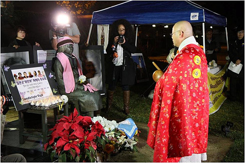 한국불교태고종 해외교구 교구장이신 종매 스님께서 일본의 진정한 사과를 받지 못하고 이미 세상을 떠나신 피해자 할머니들의 넋을 기리는 추모제를 지내주셨습니다.