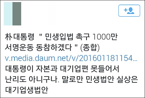 대통령이 재계와 국회를 압박하는 법안 촉구 서명운동에 나선 것에 대해 SNS에서는 비판이 쏟아졌다.