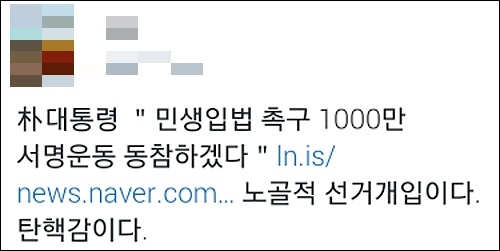 네티즌 ‘nab****’은 “혼이 비정상 이라 이젠 국회와 싸움을 선전포고 하는가요”라고 개탄했고 ‘park******’은 “노골적 선거개입이다. 탄핵감이다”라고 위법성을 주장했다.