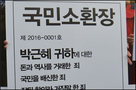 대책위는 또 박근혜 대통령에게 “박근혜 귀하, 돈과 역사를 거래한 죄 등에 관해 조사할 일이 있으니 23일까지 소녀상 앞으로 출석하기 바란다”고 국민소환장을 제시하는 퍼포먼스를 벌였다.