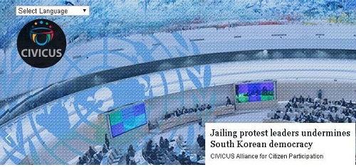 그 당시 CIVICUS는 한국의 박근혜 대통령에게 시위자들에 대한 사법적 탄압과 임의 구금에 대해 우려를 표명하는 글을 쓴 바가 있다.