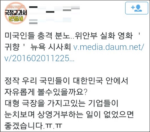 이 밖에도 “무조건 봅시다, 알립시다. 저들의 만행을..”, “극장 개봉해서 우리의 자라나는 학생들에게 보여줘야 한다”, “일본의 만행은 평생 홍보해야 됨”, “한국에서 상영하면 꼭 보고 역사를 가슴에 새겨 놓겠습니다”,
