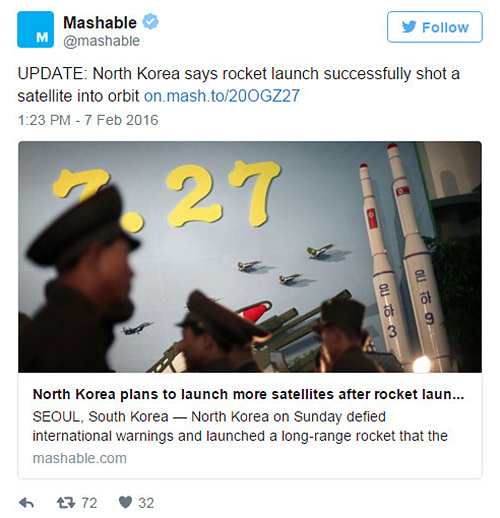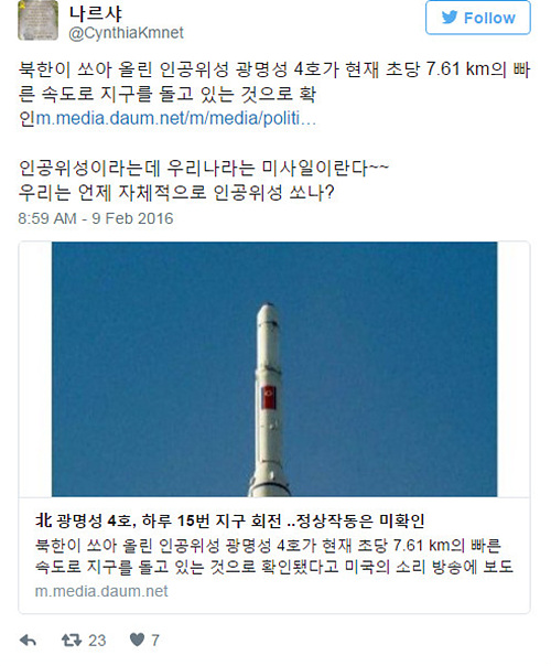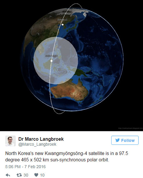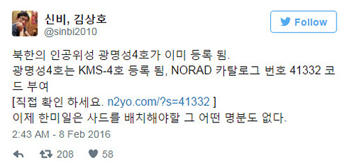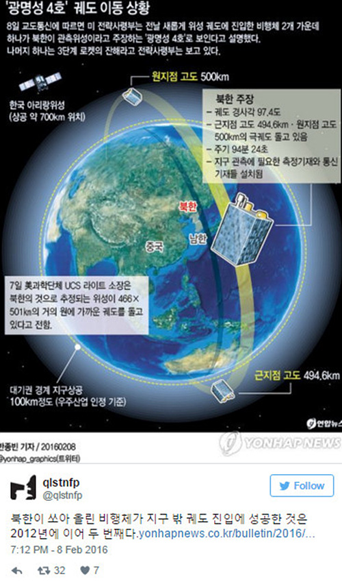 북한 인공위성(KMS-4) 발사 성공 궤도 진입 안착