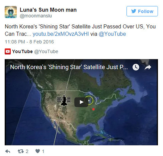 북한의 광명성(Shining Star) 인공위성이 막 미국을 지나갔다. 여기서 추적할 수 있다.