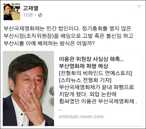 - ‘이용관 사퇴 종용’ 파문에 부산영화제 ‘보이콧’ 움직임까지
