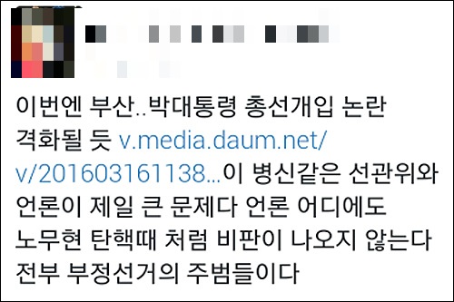 SNS에서는 “대통령이 모든 공천을 다 관리 하고 있고 선거 운동까지 하고 있구나!”(ich*****), “선관위와 언론이 제일 큰 문제다, 어디에도 노무현 탄핵 때처럼 비판이 나오지 않는다”(pres*****), “노무현과 같은 기준을 적용하면 박근혜는 탄핵 100번은 당했다”(taew*****) 등의 반응이 이어졌다.
