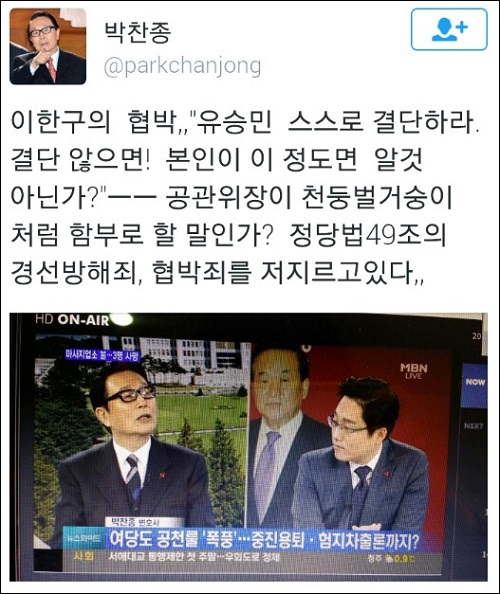 그런가하면 정치계 원로 박찬종 변호사는 “공관위장이 천둥벌거숭이처럼 함부로 할 말인가?”라며 “정당법 49조의 경선방해죄, 협박죄를 저지르고 있다”고 강력 비판했다.