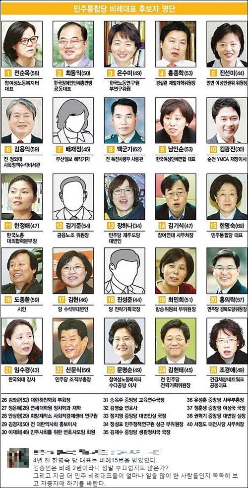SNS에서는 2012년 19대 총선 당시 한명숙 통합민주당 대표가 확정했던 비례대표 명단이 공유되고 있다.