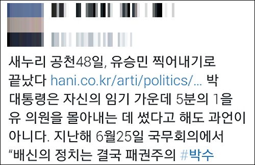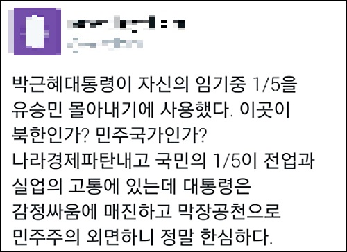 SNS “친박패권의 광기…임기 5분의1을 유승민 몰아내기에 쓴 대통령”