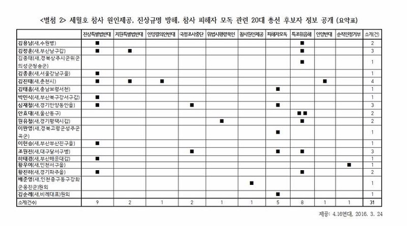 혹자들은 총선은 지역선거이니 세월호 이슈가 야당에 도움이 되지 않는다고 말한다. 이는 단원고가 있는 안산 지역의 문제라고 미루어버리는 이들도 있다. 그러나 자식이 죽어 가슴에 묻어버린 문제가 어찌 어느 지역에 국한된 일이란 말인가? 세월호는 현 대한민국의 비리와 모순이 모두 집합된 비극의 결정체이다. 그리고 사고가 난 후에도 행정, 입법, 사법기관 등 모든 국가기관이 모두 나서 은폐하고 덮어버리고 왜곡시키는 총체적인 현재 진행형 범죄다. 심지어 언론마저 앞장서서 진실을 왜곡하고 진실을 밝히려는 사람들을 종북으로 공격하고 분열시켰다.