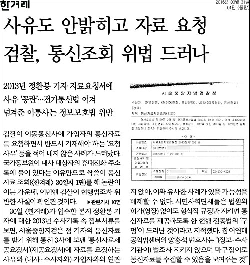 12. 수사기관이 지난 1년 동안 기자·PD 등 언론인들의 통신자료를 무차별적으로 사찰한 것으로 드러나 취재원 및 공익제보자 노출과 취재활동 위축이 우려됩니다.