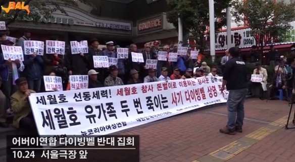 그해 10월 24일, 서울극장 앞에서 진행된 영화 <다이빙벨> 상영 반대 시위에도 일당을 주고 알바를 동원한 것으로 나타났다.