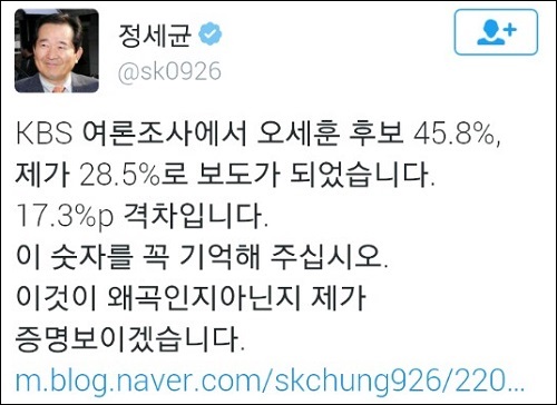 앞서 지난 3월 24일 더불어민주당 정세균 의원은 후보등록을 앞두고 자신의 SNS를 통해 “더민주 후보자들은 상대 후보와도 열심히 싸워야 하지만, 아마 여론 조사의 횡포와도 함께 싸워야 할 것”이라고 밝힌 바 있다.