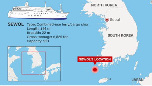 2014년 4월 16일 대부분이 제주도로 수학여행 중인 고등학교 학생들인 304명이 사망한 세월호가 한국 남서쪽 해안에서 침몰했다.