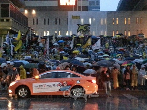 저녁 7시로 예정된 ‘세월호 참사 2년, 기억·약속·행동 문화제’는 폭우로 인해 약속된 시간 보다 늦어졌지만 깜짝 게스트로 무대에 오른 방송인 김제동씨의 모습에 추모 열기는 한층 뜨거워졌다.
