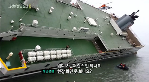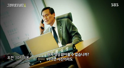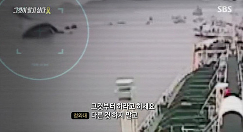 그러면서 청와대는 “영상시스템(을 탑재한 배가 도착할 시간이) 몇 분 남았냐”며 “가는 대로 영상 바로 띄우라고 하라, 그것부터 하라고 하라, 다른 것 하지 말고”라고 닥달했다.