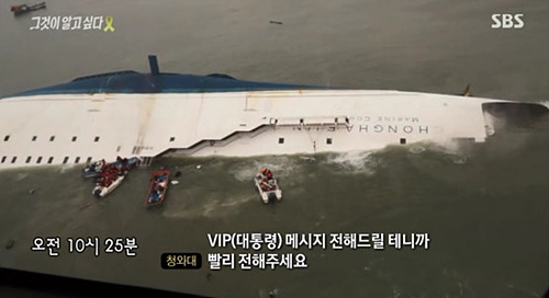 세월호 참사 2주기인 16일 밤 방송된 SBS ‘그것이 알고싶다-세월호와 205호 그리고 비밀문서’은 당시 청와대 위기관리상황실측과 해경본청, 서해해경청, 목포해경청이 나눈 대화 내용을 자세히 전했다. 청와대와 해경본부간 핫라인 통화 내용은 2014년 7월 국회 ‘세월호 침몰사고 국정조사 특별위원회’에서 공개된 바 있다.