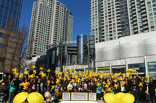 토요일인데다 날씨 또한 포근하여 야외로 몰려나온 토론토 시민들은 가던 길을 멈추고 행진 대열에 관심을 보였으며 끝이 보이지않는 노란 바람개비 물결에서 눈을 떼지 못하는 듯 했다.