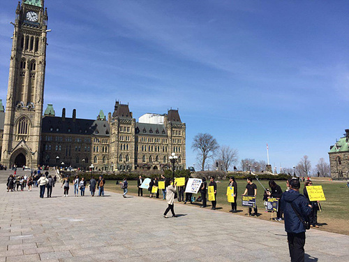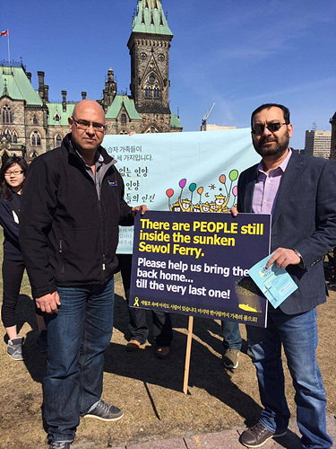 오타와에서도 16일 국회의사당에서 집회를 열고 세월호 참사 희생자들을 추모했다.