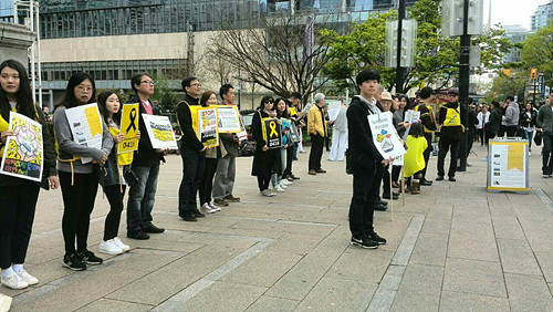 세월호 참사 2주기 추모 416 전세계 해외 연대 동시행동에 동참하는 토론토 집회가 16일 놀스욕 시청 광장에서 약 200여 명의 교포들이 참석한 가운데 열린 것.