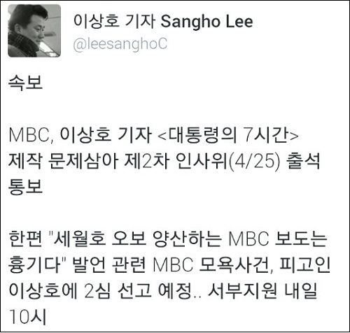한편, 재판에 앞서 이 기자는 자신에 대한 MBC의 인사위원회 개최 소식을 전하기도 했다.