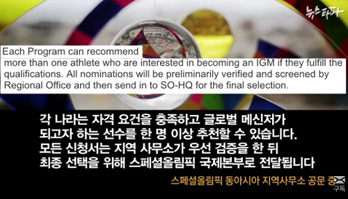 스페셜올림픽 동아시아 지역사무소 관계자는 <뉴스타파>와의 전화통화에서 “우수한 인재는 모두 추천하라고 했으나 한국에서는 단 1명만 추천했다”고 밝혔다.
