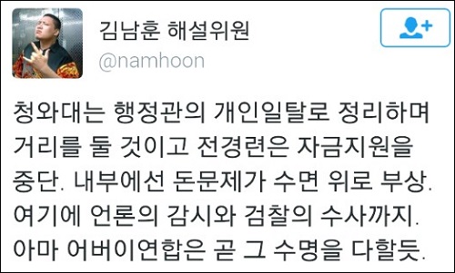 네티즌들도 의심의 눈초리를 보내고 있다. 김남훈 스포츠 해설위원은 지난 23일 자신의 트위터를 통해 “청와대는 행정관의 개인일탈로 정리하며 거리를 둘 것이고 전경련은 자금지원을 중단. 내부에선 돈 문제가 수면 위로 부상. 여기에 언론의 감시와 검찰의 수사까지. 아마 어버이연합은 곧 수명을 다할 듯”이라고 예상 했다.