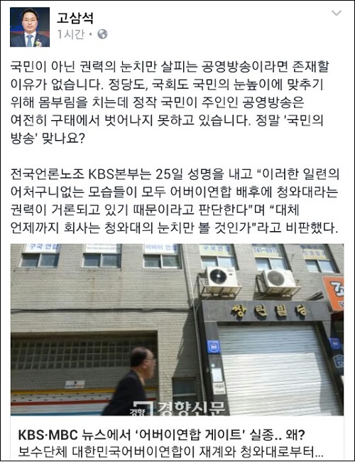 방송통신위원회 야당 추천 고삼석 상임위원은 “국민이 아닌 권력의 눈치만 살피는 공영방송이라면 존재할 이유가 없다”며 “정당도, 국회도 국민의 눈높이에 맞추기 위해 몸부림을 치는데 정작 국민이 주인인 공영방송은 여전히 구태에서 벗어나지 못하고 있다”고 비판했다.