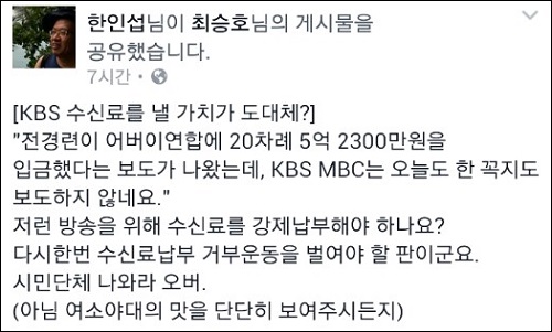 한인섭 서울대 법학전문대학원 교수는 ‘KBS에 수신료를 낼 가치가 있냐’며 “저런 방송을 위해 수신료를 강제 납부해야 하나요? 다시 한 번 수신료 납부 거부운동을 벌여야 할 판”이라고 개탄했다.