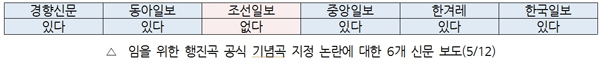 · 임을 위한 행진곡 공식 기념곡 지정 논란, 조선만 보도 안 해