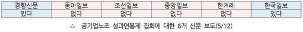 · 공기업노조 성과연봉제 집회, 경향·한국만 보도