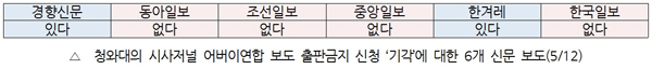* 모니터 대상 : 경향신문, 동아일보, 조선일보, 중앙일보, 한겨레, 한국일보 (종이신문에 한함)