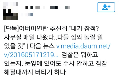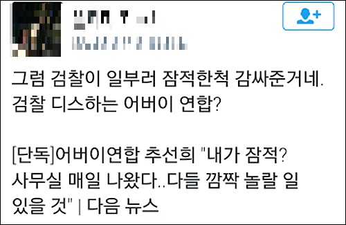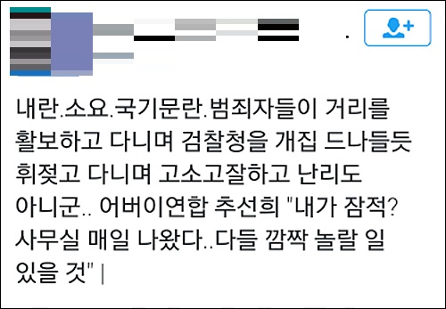 추선희 사무총장의 언론 등장에 더불어민주당 ‘보수단체 불법자금지원 의혹규명 진상조사 TF’ 위원인 박범계 의원은 트위터에서 “추 사무총장이 나타났군요. 본인은 잠적한적 없다고 하나”라고 의견을 올렸다.