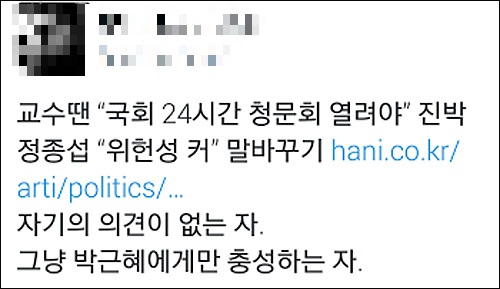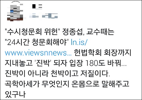 SNS “헌법 지키려 수많은 사람들이 피 흘렸는데...곡학아세”
