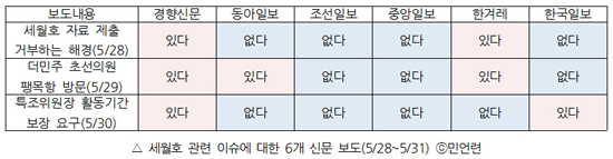 · 세월호 관련 보도 철저히 외면한 조선․중앙