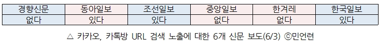 · 카카오 ‘카톡방 URL 검색 노출’, 동아․중앙․한겨레만 보도