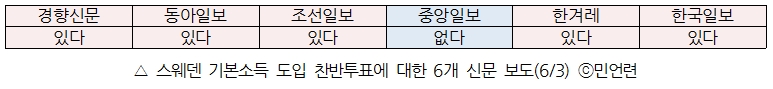 · 스웨덴 기본소득 도입 찬반투표, 중앙만 미보도