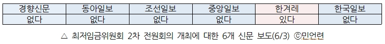· 최저임금위원회 2차 전원회의 개최, 한겨레만 보도