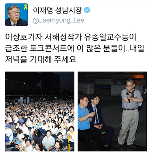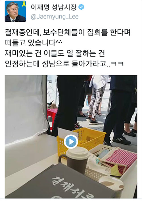 이 시장은 보수단체 회원들의 잇따른 항의 방문에 트위터에서 “결재중인데, 보수단체들이 집회를 한다며 떠들고 있다”며 “재미있는 건 이들도 일 잘하는 건 인정하는데 성남으로 돌아가라고”라고 전하기도 했다.