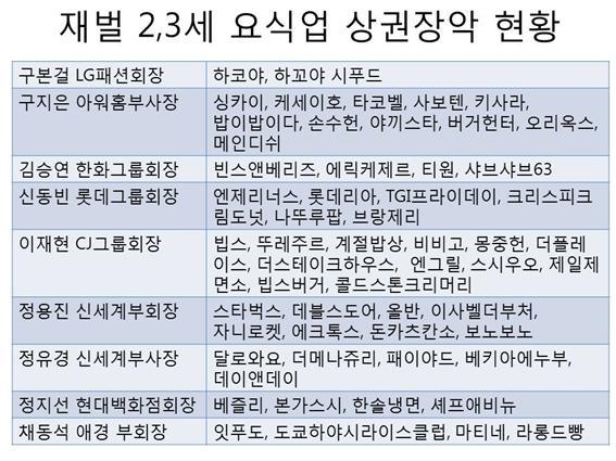 이렇게 재벌가 자제들이 회사 임원이 되면 가장 많이 하는 것이 자영업자들이 만들어놓은 골목 상권을 잡아먹는 겁니다. 한식, 분식, 일식, 중식에 커피점과 콩나물까지.