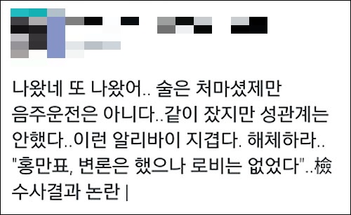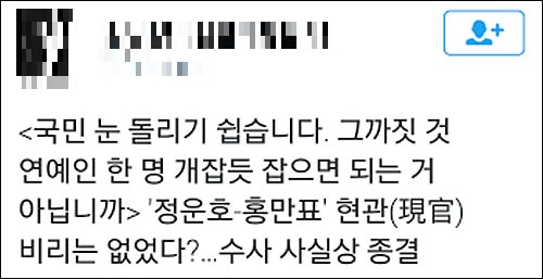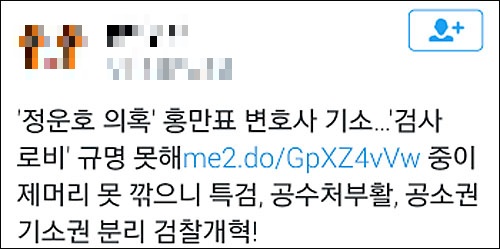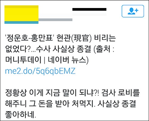 <뉴시스>에 따르면 서울중앙지검 특수1부(부장검사 이원석)는 홍 변호사가 지난해 8월 정 대표로부터 해외원정 도박 사건 검찰 수사 무마를 위한 청탁 명목으로 3억원을 받은 것에 대해 자금추적과 통화내역 조회 등을 조사한 결과 로비 흔적은 나타나지 않았다고 밝혔다.