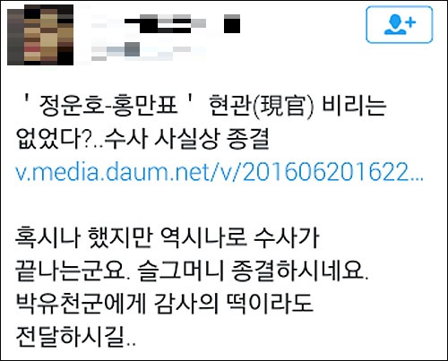 SNS에서는 “나왔네 또 나왔어, 술은 마셨지만 음주운전은 아니다, 이런 알리바이 지겹다. 해체하라”, “정황상 이게 지금 말이 되냐?”, “진짜? 믿으라고? 특검이 답이네”, “혹시나 했지만 역시나로 수사가 끝나는군요. 슬그머니 종결하시네요. 박유천군에게 감사의 떡이라도 전달하시길..”, “박유천 땡큐다 이거지?”, “야당은 더 이상 침묵하지 말고 특검으로 밝히라”, “국민 눈 돌리기 쉽습니다. 그까짓 것 연예인 한 명 개잡듯 잡으면 되는 거 아닙니까”, “홍만표 사건은 이렇게 종결할 수 있는 사안이 아니다, 특검을 통해서 강력하게 수사해야 될 것이며 부정부패 부조리를 옹호하거나 비호할 생각은 하지도 말아야 된다” 등의 의견들이 이어졌다.