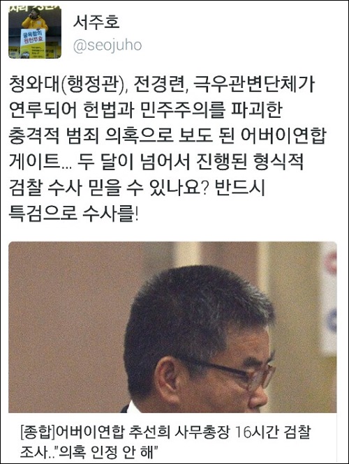 추선희 사무총장 소환은 수사 착수 두 달여 만에 이뤄졌다. 검찰은 ‘어버이연합 게이트’와 관련해 새로운 사실과 의혹들이 터져 나오는 상황에서도 수사에 적극적으로 나서지 않아 ‘청와대 눈치보기’라는 비판을 받아왔다.