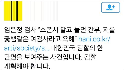 “‘꽃뱀 여검사’라 욕하기도”…SNS “부장검사 갑질이라니.. 검찰개혁 필히 해야”