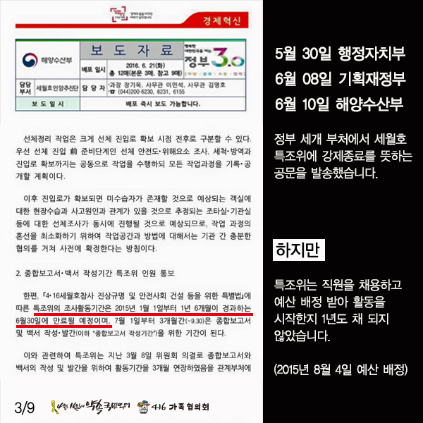 “‘핵심증거물’ 세월호를 조사해야 하는 특조위가 인양도 되기 전에 해산 위기”