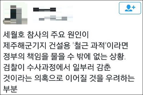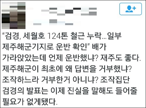 그런가하면 일부 네티즌들은 검경합수부 조사에서 적재 철근 124톤이 누락된 부분에 대한 의구심을 나타내기도 했다.