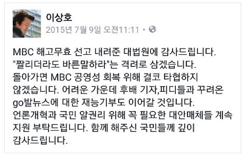 <관련기사 ☞ 대법원, 이상호 기자 MBC 해고무효 확정 판결>