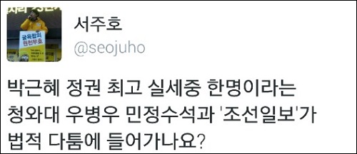 한편, <조선>의 이 같은 의혹 제기에 우병우 수석은 입장 자료를 내고 “기사는 전혀 사실이 아니며 처가 소유 부동산 매매에 전혀 관여한 바 없다”며 관련 내용을 전면 부인했다.