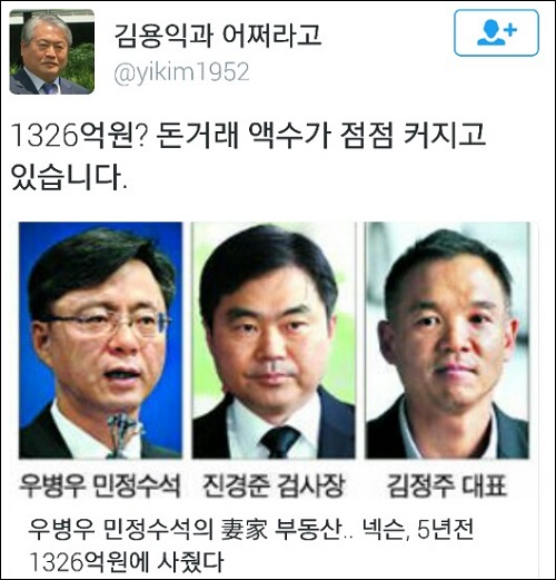 18일 <조선일보>는 우병우 청와대 민정수석의 장인인 이상달 전 정강중기‧건설 회장이 자신의 네 딸에게 상속한 서울 강남역 부근 1300억원대 부동산을 넥슨코리아가 매입해줬던 것으로 17일 확인됐다고 보도했다.