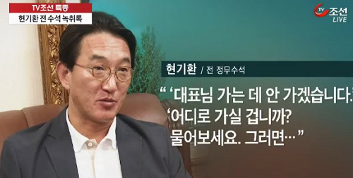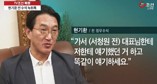 <TV조선>은 19일 현기환 전 수석도 최경환, 윤상현 의원과 함께 공천에 관여, 적지 않은 역할을 했던 것으로 확인됐다며 관련 녹취 파일을 공개했다.